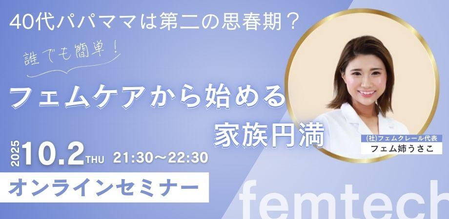 10月2日(木)にオンラインで実施された本セミナーでは、フェムテック専門家・フェム姉うさこ氏を講師に迎え、更年期に起こる体の変化と、夫婦で実践できるセルフケア法を学びました。