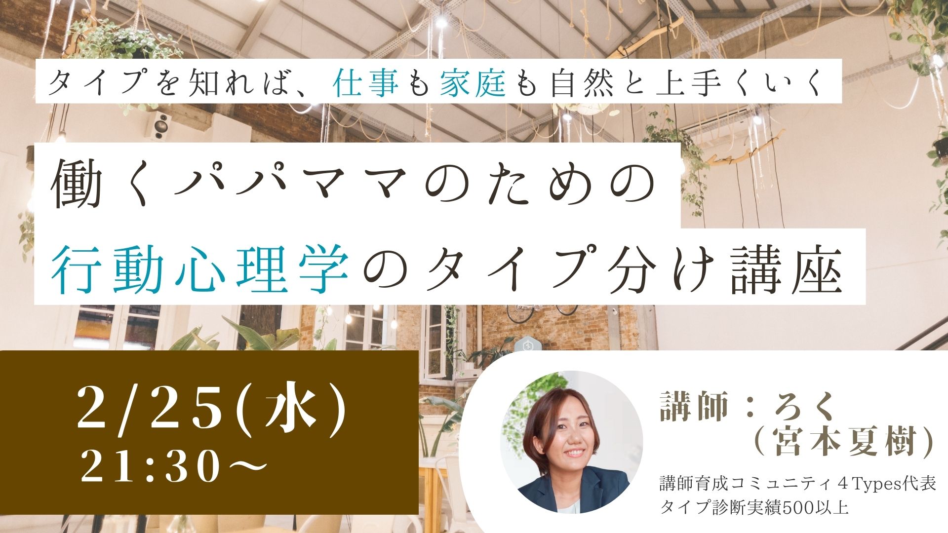 本機構主催のセミナー「タイプを知るだけで毎日がラクに! 働くパパママのための【行動心理学入門セミナー】」を開催しました