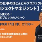 2025年9月18日 / 最終更新日時 : 2025年12月2日 oyakokyoiku 活動 本機構主催のセミナー「仕事も家庭も上手くいく!超汎用スキル【プロジェクトマネジメント】入門」を開催しました 9月17日(水)にオンラインで実施された本講座では、上場金融会社で数々の大型案件を手掛けた野田拓也氏を講師に迎え、プロジェクトマネジメントの基礎を学びました。「行き当たりばったりから脱却できた」「AIでWBSを作る発想が […]